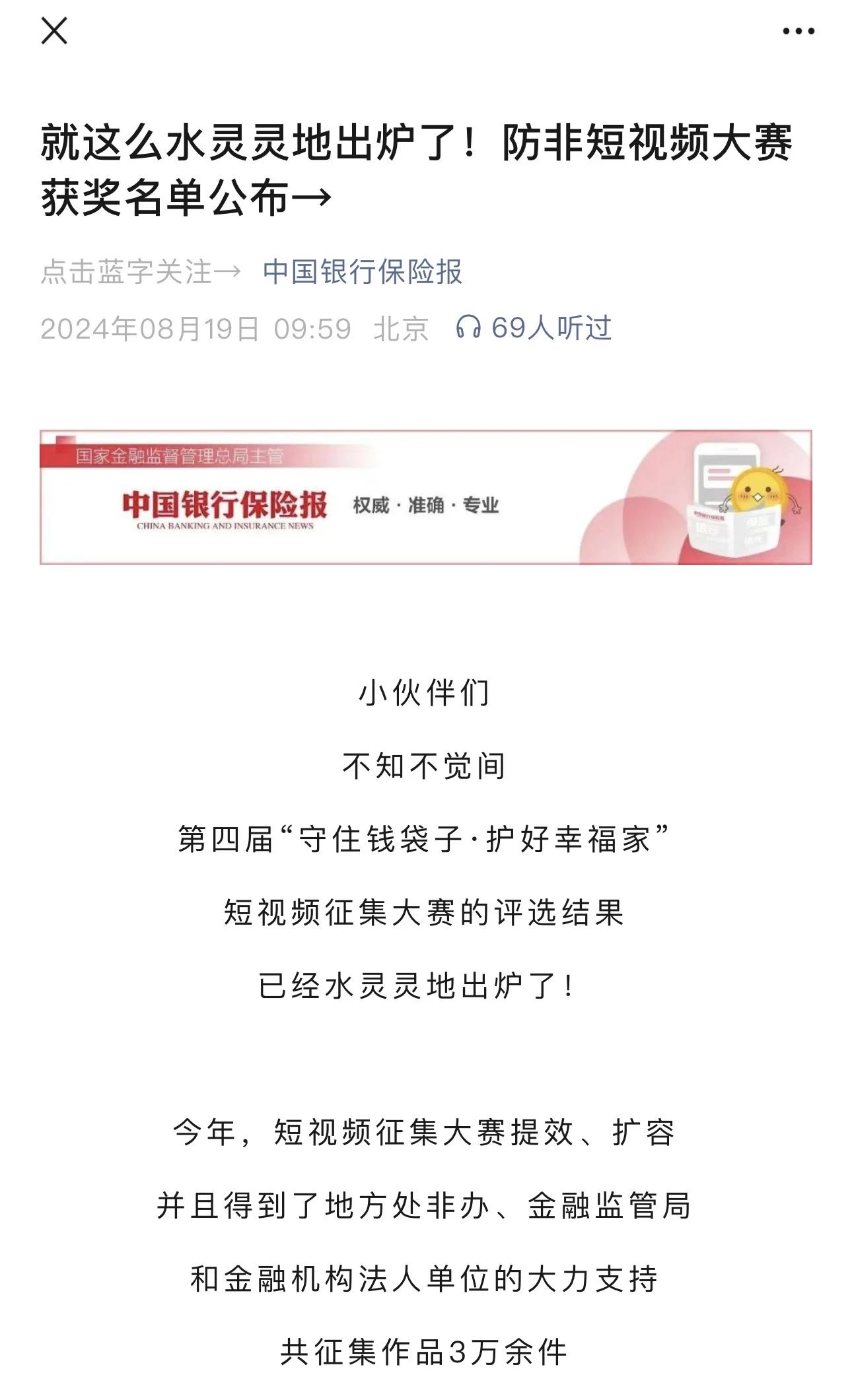 該作品緊密圍繞金融安全與防詐騙展開,以維護家庭和社會和諧穩定為宗旨,巧妙運用生動案例、貼近生活情境,將晦澀金融知識巧妙融入社會實踐,兼具教育性與趣味性。