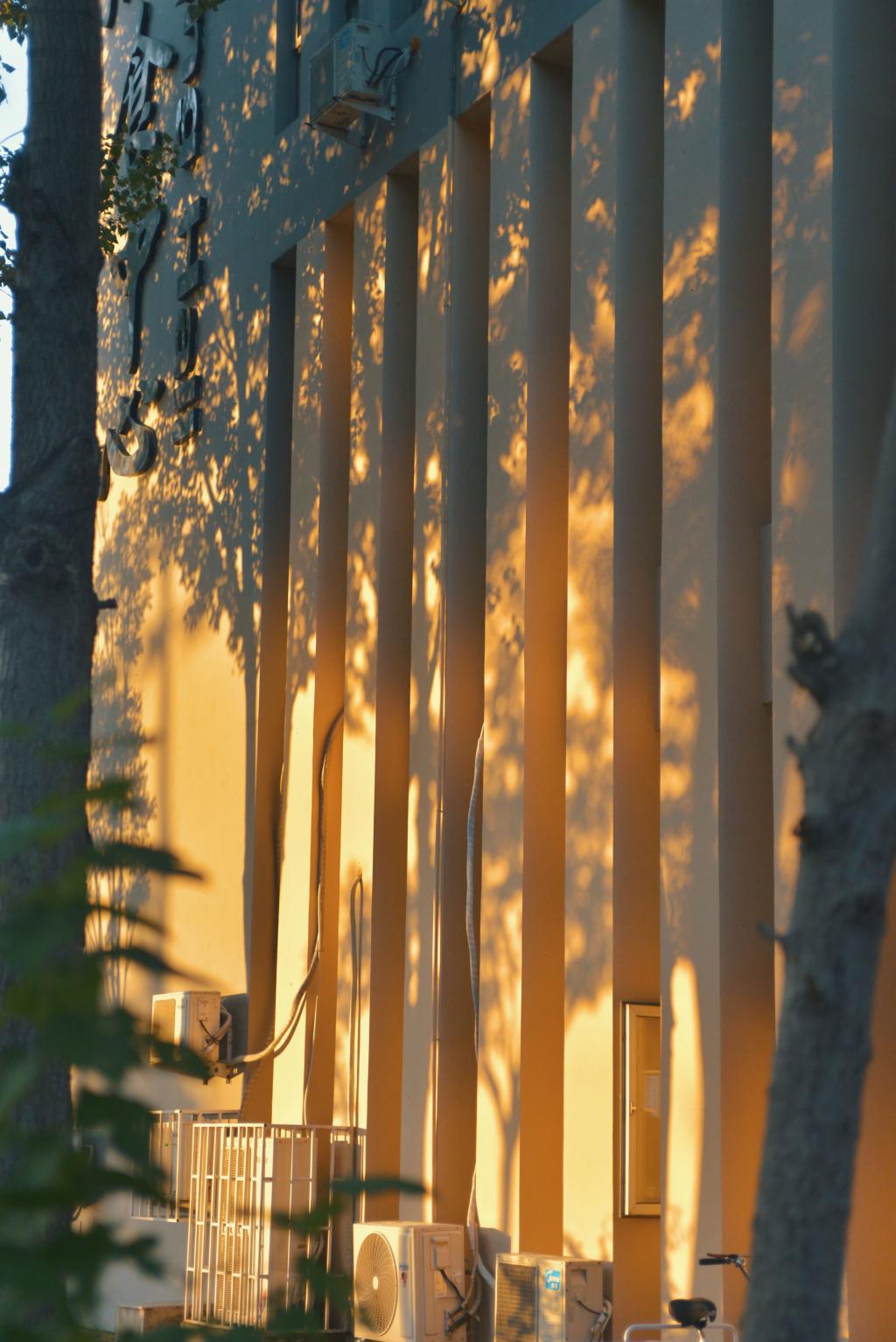 黃昏斑駁的樹蔭下,是被余暉裝飾的膳食中心