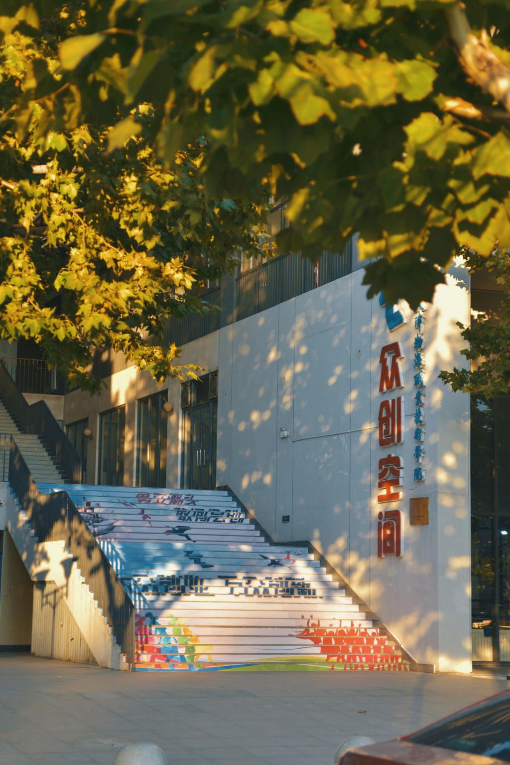 渤海路邊的梧桐樹,樹影倒映在眾創空間的墻上,形成一幅美麗的畫作。