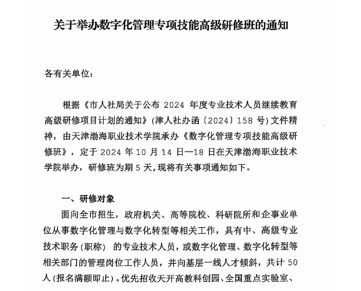 關于舉辦數字化管理專項技能高級研修班的通知