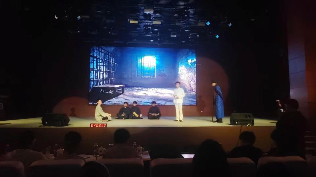 比賽中,思政課本劇《初心》在指導教師張翠宣的精彩開場白后拉開帷幕,舞臺上,演員們全情投入,通過生動的語言和肢體動作,將于方舟烈士“愛國不怕進獄門”的英勇事跡和對馬克思主義的堅定信仰展現得淋漓盡致,特別是于方舟的扮演者——機電工程學機電235班高藝偉,以及飾演同他對峙的天津警察廳廳長楊以德的扮演者——環境與化學工程學院環工231班張宇鑫,他們精湛的演技、清晰又滿腹情感的臺詞功底,贏得了在場每一位師生的熱烈掌聲,將全劇推向高潮。最終,該劇以其深刻的選題、精湛的演技贏得了評委和觀眾們的一致好評。