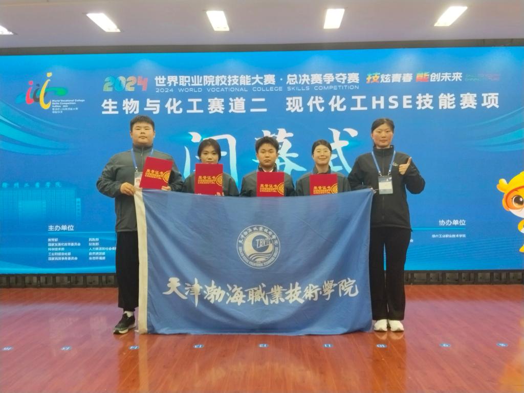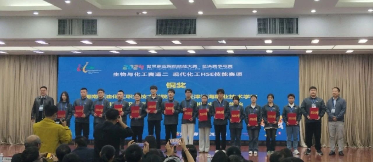 10月28至31日,2024年世界職業院校技能大賽總決賽爭奪賽(高職組)生物與化工賽道二現代化工HSE技能小組賽在徐州工業職業技術學院舉行,學院由安全221班劉柏辰、安全221班齊萬山、安全221班王夢涵和安全231班楊麗榮組成的代表隊在比賽中脫穎而出,斬獲銅牌。