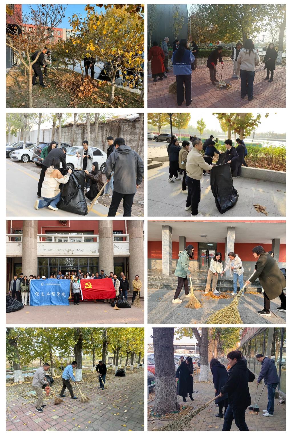 立冬已至,黃葉飄落,為美麗校園增添詩意的同時也帶來了消防隱患。為弘揚“崇尚勞動、熱愛勞動、辛勤勞動、誠實勞動”的勞動精神,踐行“為人民服務”的初心使命,學院全體教職工于11月8日以黨支部為單位開展了“以勞動之美繪就校園平安底色”主題志愿服務活動,在本支部責任區內清理枯枝敗葉等各類垃圾,助力美麗校園、平安校園建設。