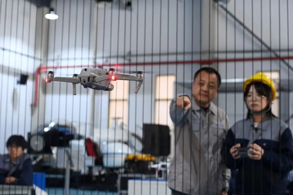 11月12日,天津現(xiàn)代職業(yè)技術(shù)學(xué)院老師在無(wú)人機(jī)產(chǎn)教融合實(shí)踐中心指導(dǎo)學(xué)生。新華社記者 趙子碩 攝