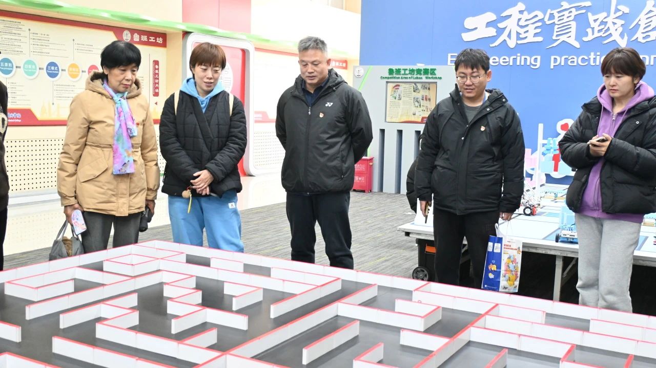 在學院魯班工坊,侯合金詳細介紹了學院在“職教出海”方面取得的顯著成就,展現職業教育國際化的廣闊前景與重要意義,為校社共建開拓了國際視野。在工程實踐創新基地,學生為黨員們演示了電腦鼠走迷宮,介紹算法革命帶來新質生產力的提升。黨員們親身體驗了前沿科技與黨史教育、廉政教育的有機融合,通過沉浸式觀看VR視頻,深刻感受到現代科技技術對思想建設的強大助力。在綠色低碳智慧生態館,黨員們充分體驗了綠色中國的創新活力,親自參與騎行發電項目,不僅增強了大家的環保意識,也對渤海之翼等系列產品有了更直觀的認識與體驗,紛紛對學院在綠色科技領域的探索與成就點贊。在國粹京劇教育基地,黨員們深入了解到京劇與天津的深厚淵源、京劇各大流派的特色和天津名角的傳奇故事,老師深入淺出的講解讓黨員們對京劇這一傳統藝術瑰寶有了全新的認識與感悟。