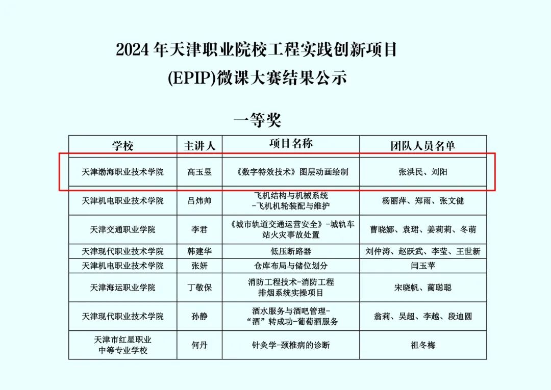 12月2日,由天津中華職業教育社舉辦的2024年天津職業院校工程實踐創新項目微課大賽決賽隆重舉行,本次大賽共有12所高職院校、3所中職院校參加,共征集微課作品140余個。經過大賽的網絡評審以及現場評審,通過無學生現場教學展示和介紹教學實施設計方案等決賽環節,學院教師高玉昱、張洪民和劉陽組成的團隊榮獲一等獎。