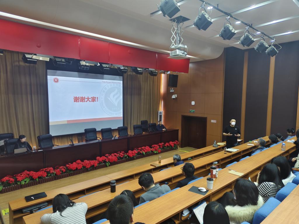 為學(xué)習(xí)貫徹落實習(xí)近平總書記關(guān)于學(xué)校思政課建設(shè)的重要指示精神,切實推進習(xí)近平新時代中國特色社會主義思想和黨的二十大、二十屆三中全會精神“三進”工作,進一步提升學(xué)校思政課教師教學(xué)能力及課堂教學(xué)效果,12月18日,馬克思主義學(xué)院開展2024 下半年全國高職高專院校“思政示范課巡講”活動,特邀天津電子信息職業(yè)技術(shù)學(xué)院副教授熊飛以“小我融入大我,踐行人生價值”為主題進行了精彩巡講。馬克思主義學(xué)院全體思政課教師,學(xué)生代表五十余人參加示范課巡講活動。