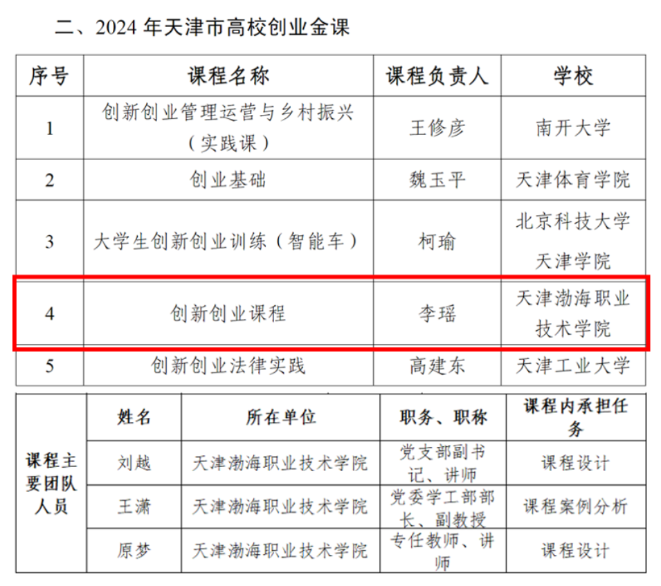 近日,天津市教育委員會發布了《關于公布天津市高校就業創業金課入選名單的通知》。學校《創新創業課程》在天津市各高校的百門課程中脫穎而出,被評為2024年天津市高校就業創業金課,是此次獲評中唯一的高職院校,充分彰顯了學校在生涯教育與創業指導工作方面的成效與深厚底蘊。