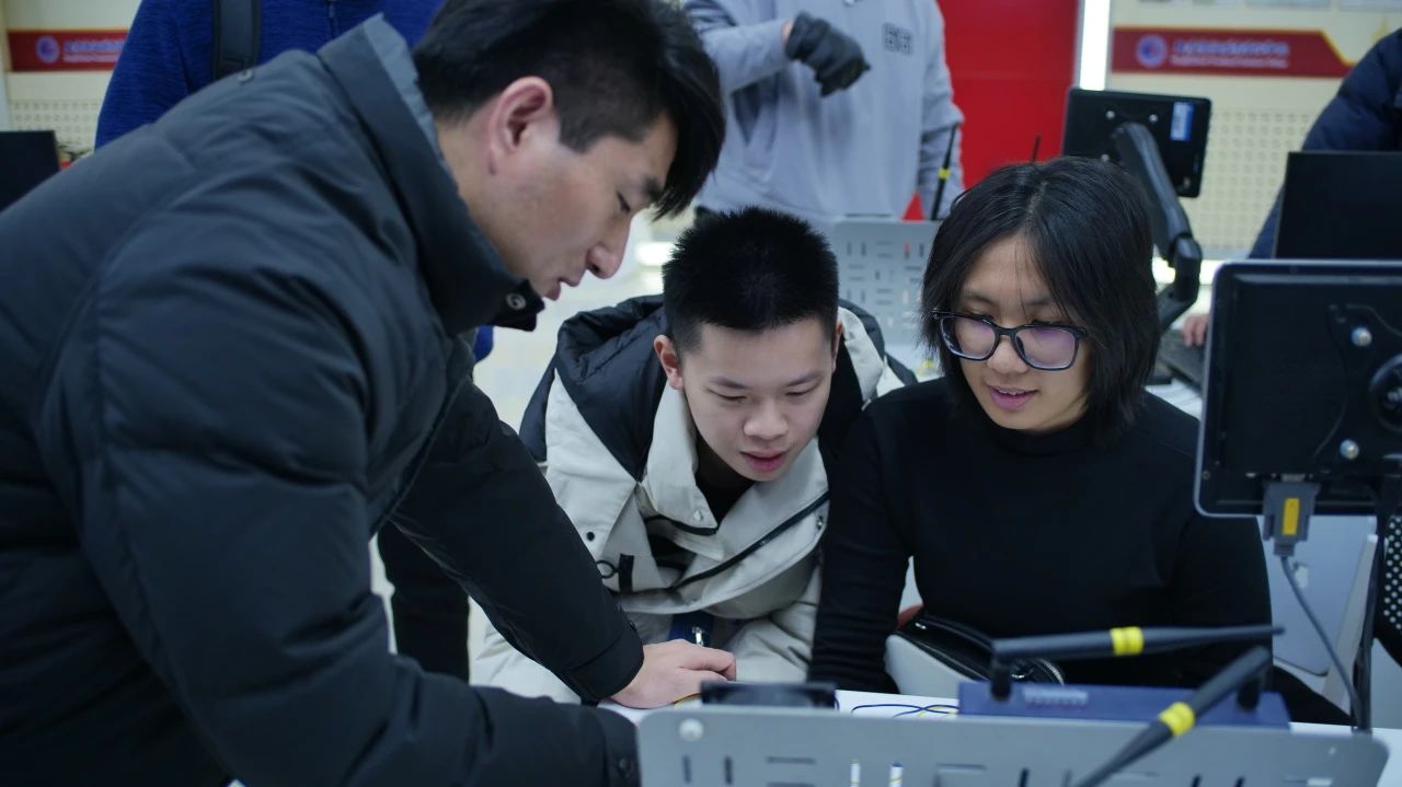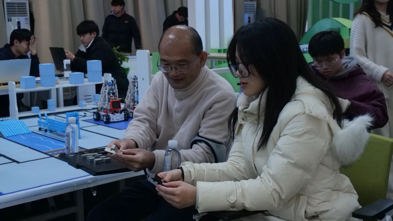 隨后,來訪師生進行專業課程認知體驗活動。活動過程中,師生們完成了魯班鎖的拼接,觀摩了迷宮機器人等賽項操作;了解了虛擬仿真技術,并通過其真實還原,身臨其境般體驗了石化工廠的生產過程;圍繞智慧城市典型應用,學習了物聯網聲控燈設備安裝與調試;了解了人工智能AIGC的基本概念和應用場景,體驗了AIGC實際操作。
