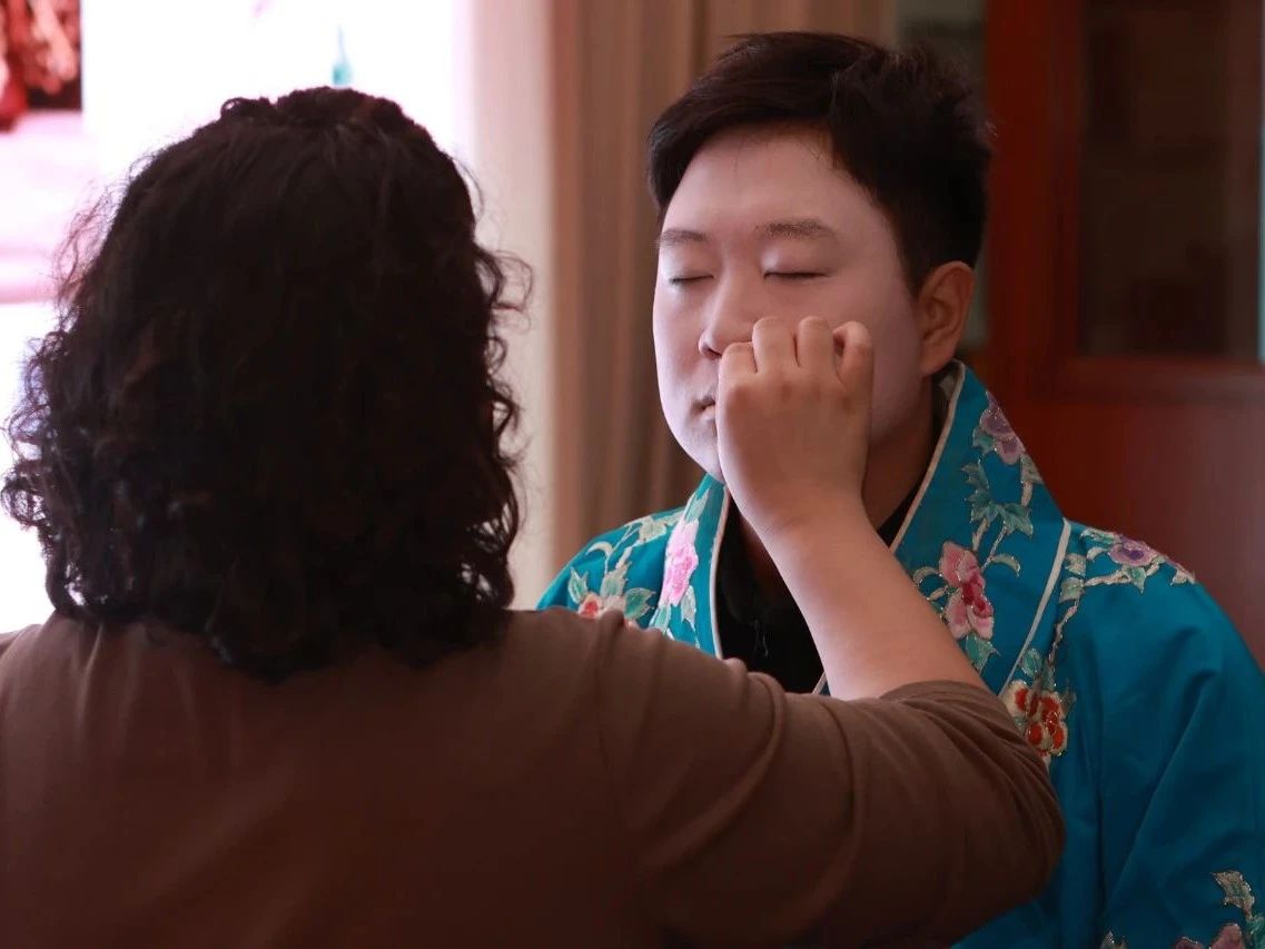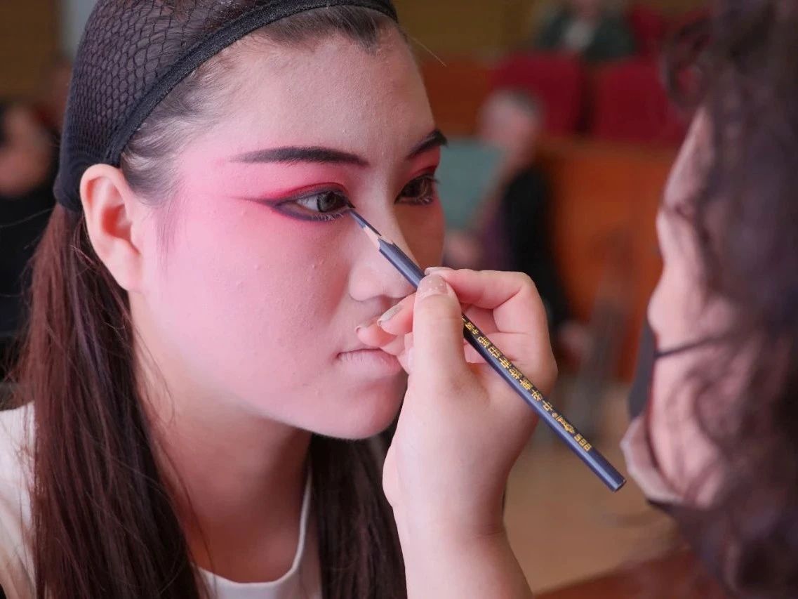 活動的另一大亮點(diǎn),是戲曲服裝師郭震與化妝師馬瑩瑩的現(xiàn)場實(shí)操展示。郭震老師詳細(xì)介紹了京劇服飾的種類、色彩搭配以及背后的文化寓意,從龍袍的尊貴到水袖的柔美,每一件服飾都蘊(yùn)含著豐富的歷史故事和文化符號。而馬瑩瑩老師則現(xiàn)場演示了京劇的妝扮,從底色勾勒到細(xì)節(jié)描繪,每一步都展現(xiàn)出化妝師對美的極致追求。同學(xué)們在老師的指導(dǎo)下,紛紛嘗試化上簡單的京劇妝容,穿上色彩斑斕的戲服,親身體驗(yàn)了一把“變身”京劇演員的樂趣,深切感受到了京劇服飾與化妝藝術(shù)之美。