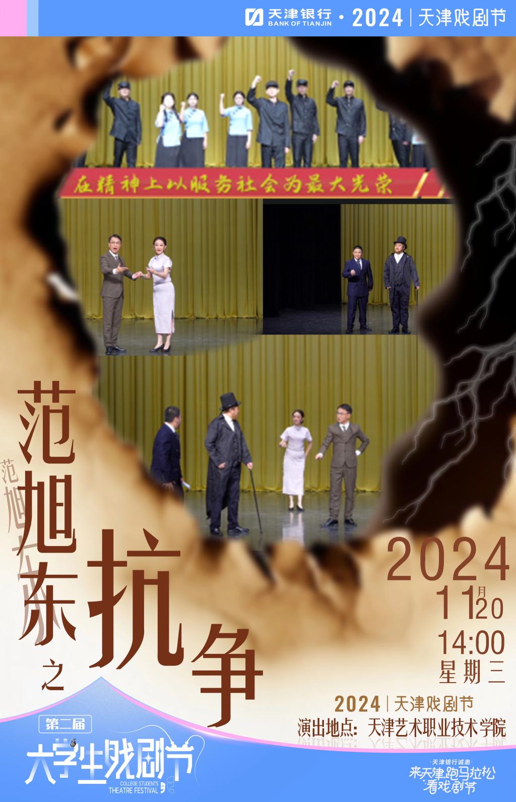 第二屆天津大學生戲劇節是天津銀行·2024天津戲劇節三大核心板塊之一,由中共天津市委宣傳部、共青團天津市委員會、天津市文化和旅游局、天津市教育委員會、天津北方演藝集團主辦,天津人民藝術劇院、開心麻花(天津)文化傳播有限公司承辦。本屆大學生戲劇節設置精品原創單元和經典演繹單元,引導青年學子對經典作品的創新表達開展深入探索。