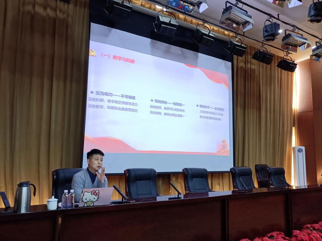 為深入學習貫徹黨的二十大和二十屆三中全會精神,落實習近平總書記在學校思想政治理論課教師座談會上的重要講話精神,牢牢把握“四個善作善成”重要要求,推動思政課教師學習培訓常態化、長效化,全面提升學校思想政治理論課質量,2月21日下午,由馬克思主義學院主辦的“思政課教學質量提升專項培訓”第二次活動成功舉辦。活動邀請天津師范大學馬克思主義學院副院長、博士生導師王雪超作專題授課,馬克思主義學院黨支部全體教師參加。