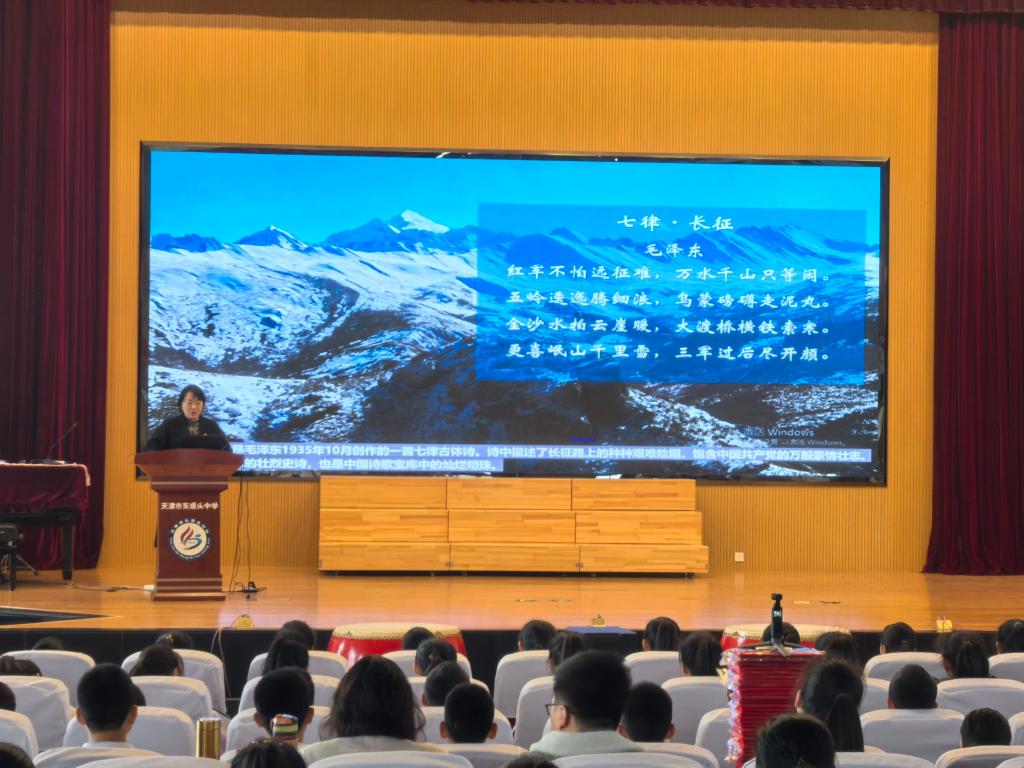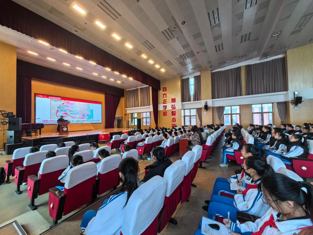 為深入推進北辰區大中小學思政課一體化建設的常態化工作,馬克思主義學院教師胡文慧于2月28日上午走進東堤頭中學,開展了一場主題為《偉大的長征精神》的精彩黨課宣講。東堤頭中學七、八年級的同學以及部分黨員教師400余人齊聚一堂,共同參與了本學期首場大中小學思政課一體化教育活動。