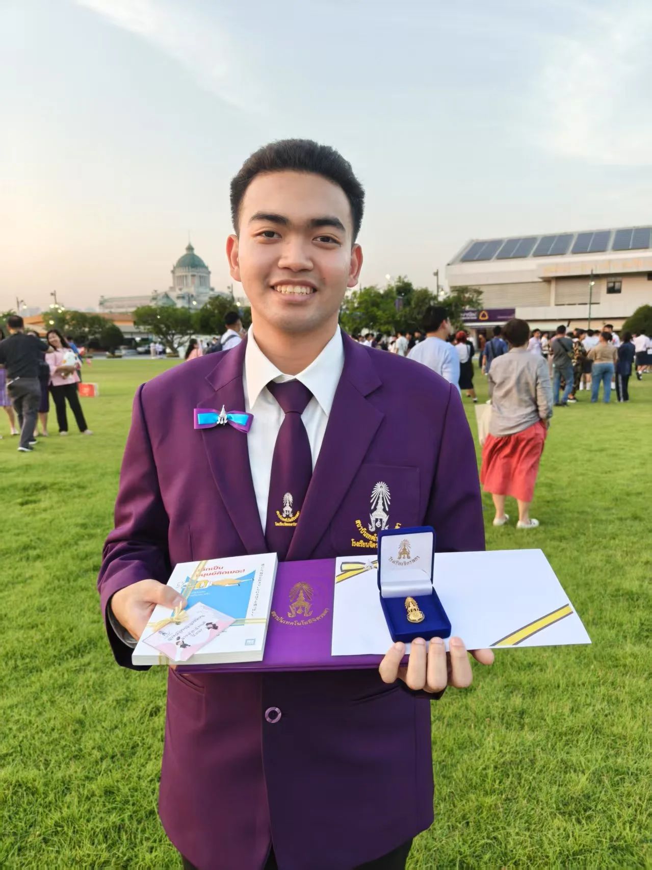 3月27日,泰國(guó)吉拉達(dá)技術(shù)學(xué)院隆重舉行畢業(yè)典禮。學(xué)院與該校聯(lián)合培養(yǎng)的2023級(jí)機(jī)電一體化技術(shù)專業(yè)留學(xué)生文吉(Kitsana Wattanathum)憑借優(yōu)異表現(xiàn)榮獲“優(yōu)秀畢業(yè)生”稱號(hào),并獲詩(shī)琳通公主親自頒發(fā)證書。