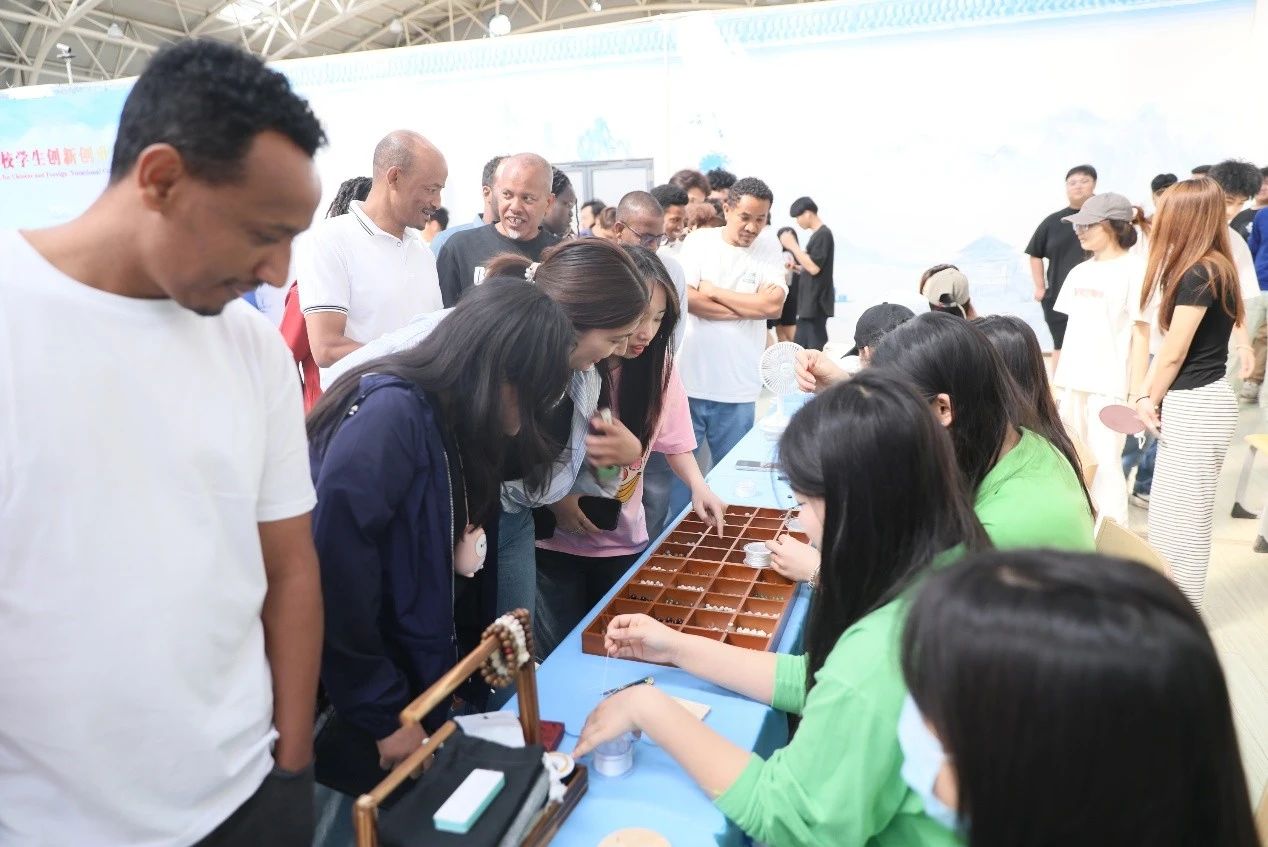 5月15日,第八屆中外職業院校學生創新創業集市在學院眾創空間舉行。黨委書記魏炳舉,黨委副書記、工會主席、副院長王蕾出席,黨委學生工作部、國際交流與合作辦公室主要負責人,各二級學院副書記及師生代表參加。來自泰國、越南、坦桑尼亞、馬來西亞、馬達加斯加、赤道幾內亞、埃塞俄比亞、哈薩克斯坦、柬埔寨等國家的40余名留學生及帶隊教師參加。在集市現場,師生們沉浸式感知中國文化魅力,于各二級學院展位前駐足,細細品鑒學子們匠心獨具的特色手工藝作品,在創意與傳統的交織中觸摸職教創新的溫度。