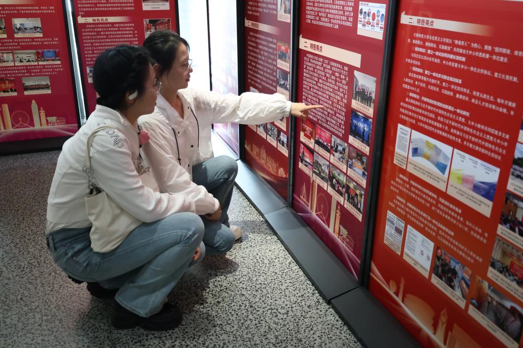 此次展覽全景式呈現了天津市在思政教育領域的創新實踐與豐碩成果,為師生帶來一場理論與實踐交融的思政教育盛宴。展覽以職業啟蒙、產教融合、中小學生研學等板塊為核心,生動展現思政教育貫穿全學段的育人實踐。職業啟蒙課程以生涯規劃為切入點,激發學生探索職業理想的內生動力;產教融合項目緊扣產業人才需求,將實踐場景轉化為思政育人課堂,提升學生解決實際問題的能力;中小學生研學活動則以沉浸式體驗為特色,讓學生在實踐中感悟家國情懷與責任擔當。師生們在展區內駐足觀摩各校特色成果,在學院“紅藍綠三色賦能,館校社協同共育”主題展板前,展開熱烈討論與經驗交流。