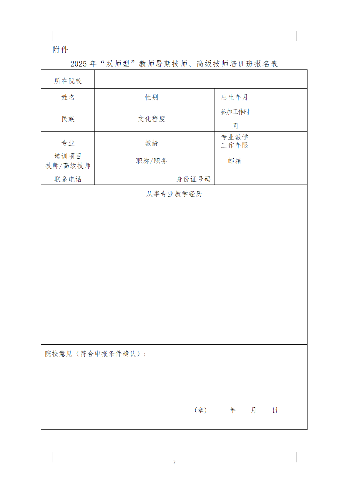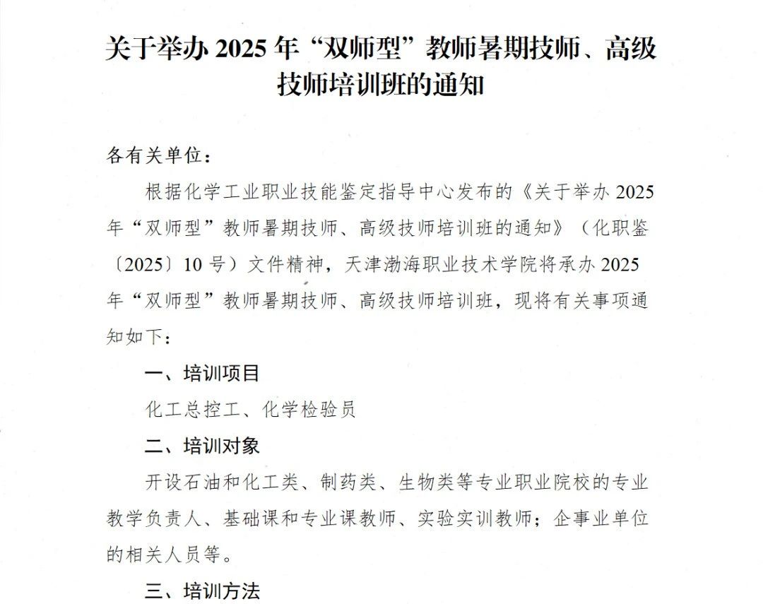 關于舉辦2025年“雙師型”教師暑期技師、高級技師培訓班的通知