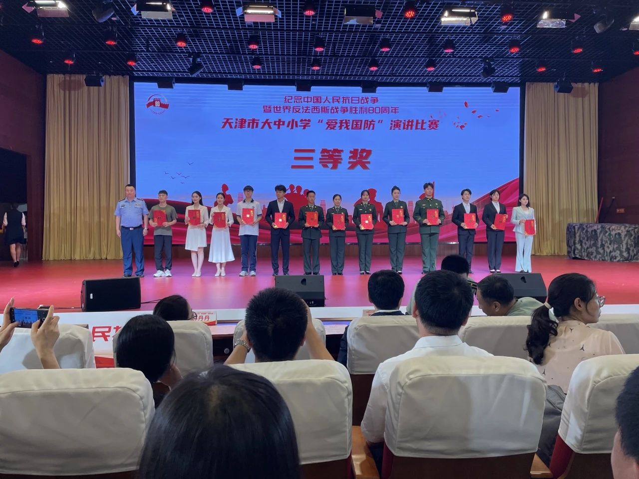 5月29日,由天津市教育委員會、中共天津市委宣傳部、天津警備區政治工作局、天津警備區動員局主辦的紀念中國人民抗日戰爭暨世界反法西斯戰爭勝利80周年天津市大中小學“愛我國防”演講比賽總決賽在天津商務職業學院舉行。學院機電工程學院學生王志、工商管理學院學生陳冰冰分別斬獲退役大學生士兵組、在校生組三等獎,是本次賽事中唯一一所在雙賽道均取得佳績的院校。參賽作品圍繞主題,銘記歷史、居安思危,通過演講展現國防故事、英雄事跡與個人感悟,用真摯的情感和深刻的見解,詮釋了對國防事業的熱愛和追求,以卓越的表現展現了新時代青少年的風采與擔當。