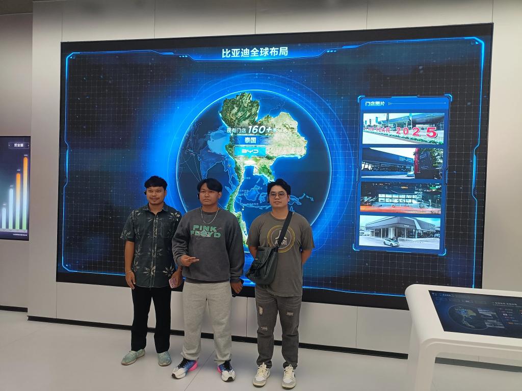 座談會上,侯合金介紹了馬克思主義學院發展概況、教學理念、思政課教學創新及在“職普融通、產教融合、協同育人”方面的實踐成果。徐霽堂重點介紹了人工智能學院新能源汽車專業建設情況及泰國、尼加拉瓜魯班工坊項目中新能源汽車領域的進展,展望了未來校企合作方向。劉芝闡述了天津迪空間聚焦新能源汽車技術、智能網聯、綠色能源等前沿領域,打造集技術體驗、行業交流、人才培養于一體的綜合平臺的實踐。她表示,此次合作為學生提供了寶貴的實踐場景,歡迎渤海師生到訪體驗,并期待未來能走進校園提供專業服務。新能源汽車專業泰國留學生、那空沙旺皇家大學本科生宋超(Pump)表示:“在天津迪空間的參觀讓我深刻感受到中國新能源汽車領域的巨大成就。我將努力學習,將先進知識帶回泰國,讓家鄉人民也能享受到高品質的新能源汽車。