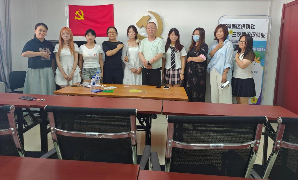 為深入貫徹落實(shí)黨的二十大精神,探索為農(nóng)服務(wù)的創(chuàng)新方法,財(cái)經(jīng)商貿(mào)學(xué)院與濱海新區(qū)大港商業(yè)供銷總公司聯(lián)合支部合作,聯(lián)合開展“‘三農(nóng)’建設(shè)促就業(yè)”系列活動(dòng)。6月17日,由財(cái)經(jīng)商貿(mào)學(xué)院教師邊俊杰帶隊(duì)的師生實(shí)踐團(tuán)隊(duì),受邀赴濱海新區(qū)朝暉里社區(qū)開展實(shí)踐活動(dòng),將“三農(nóng)”元素與中國(guó)風(fēng)美妝技藝相結(jié)合,吸引了近40名社區(qū)居民熱情參與,為社區(qū)文化生活注入了新的活力,為待業(yè)人員提供“微創(chuàng)業(yè)”新思路,此次活動(dòng)全方位推動(dòng)供銷合作社為農(nóng)服務(wù)創(chuàng)新升級(jí),為濱海新區(qū)供銷合作社在綜合改革過程中起到良好的社會(huì)效應(yīng)和社會(huì)效益。同時(shí),也充分發(fā)揮了黨建融合促發(fā)展的新舉措、新招法。