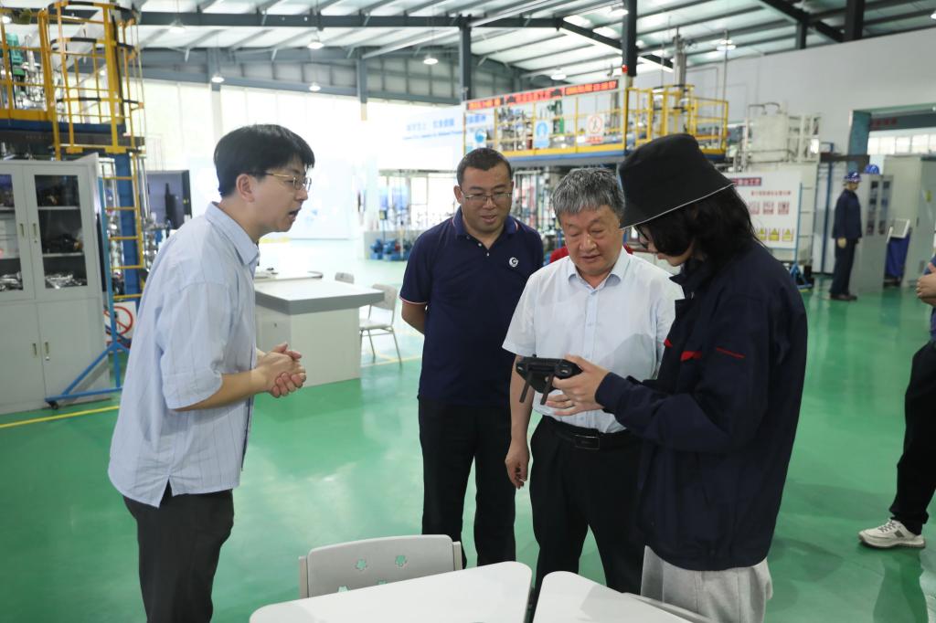 講座結束后,王順龍陪同姜忠義教授參觀了學院的智慧化工實訓基地、魯班工坊體驗中心與百年化工文化育人基地,深入了解了前沿的化工模擬實操技術與智能教學系統,親身體驗了產教融合創新成果和虛擬仿真技術在教育教學、技能培訓等方面的應用,系統回顧了天津化工行業的發展歷程與文化積淀,沉浸式感受化工產業的深厚底蘊與創新活力。