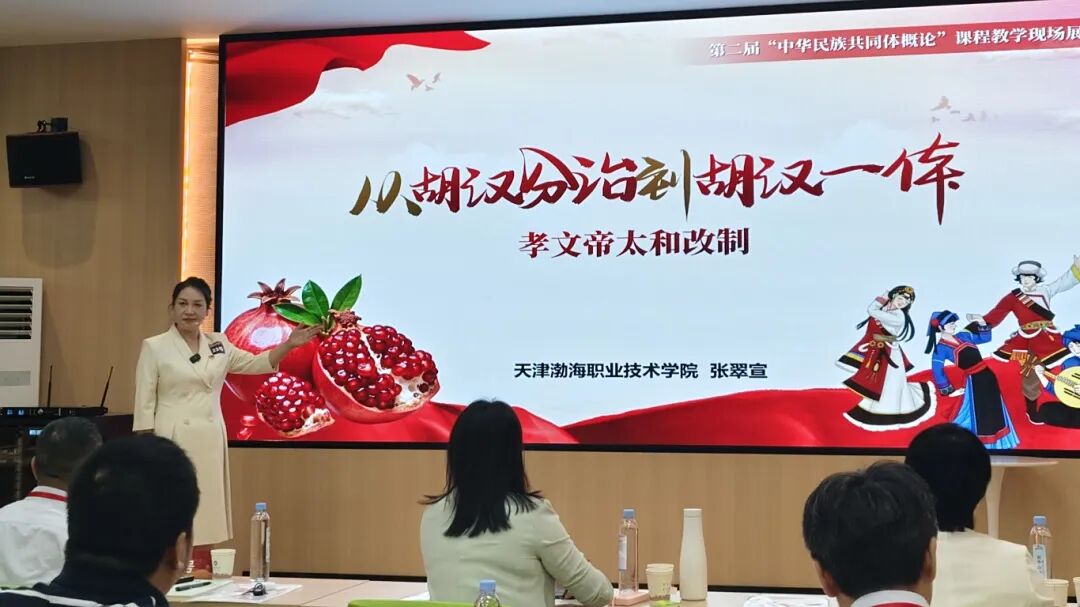 本次活動以深入貫徹落實習近平總書記關于“編好用好《中華民族共同體概論》等教材”的重要講話精神為核心,經(jīng)過了初評、現(xiàn)場展示等多輪嚴格評審。9月17日至19日決賽期間,張翠宣團隊嚴格按照活動要求,選取《中華民族共同體概論》教材內(nèi)容,以《從胡漢分治到胡漢一體》為題進行了15分鐘的現(xiàn)場授課。他們以清晰的教學邏輯、生動的內(nèi)容呈現(xiàn),充分展示了學院教師在鑄牢中華民族共同體意識教育教學領域的扎實能力與專業(yè)素養(yǎng),得到了評審專家的一致認可。