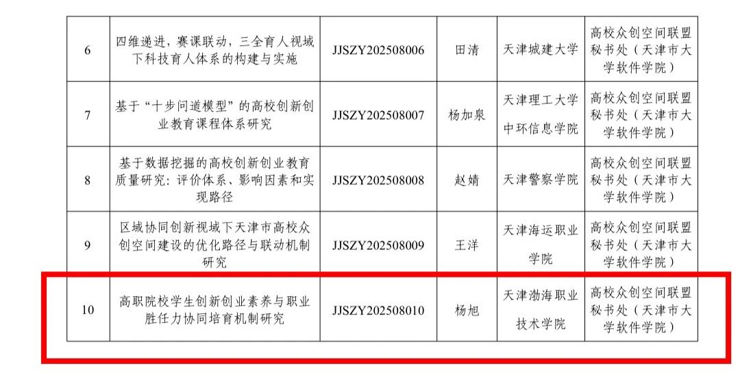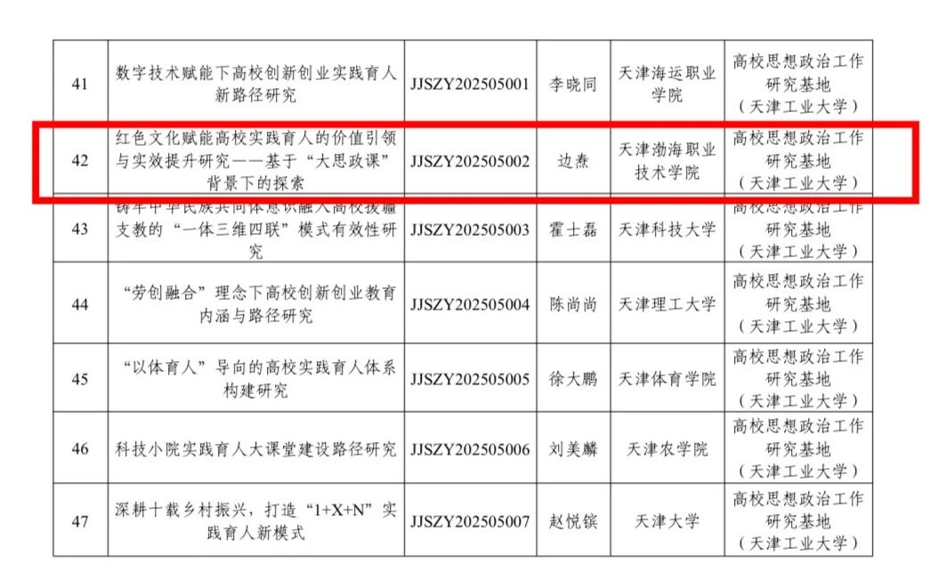 日前,市教育兩委公布了2024年天津市大中小思想政治工作專項(xiàng)課題結(jié)項(xiàng)名單和2025年天津市大中小思想政治工作專項(xiàng)課題立項(xiàng)名單。學(xué)院1個(gè)重點(diǎn)課題順利結(jié)項(xiàng)。同時(shí)今年再獲佳績(jī),實(shí)現(xiàn)2個(gè)課題雙賽道立項(xiàng),充分彰顯了學(xué)院黨委“大思政”工作格局的協(xié)同優(yōu)勢(shì),也標(biāo)志著學(xué)院思政工作研究從“單點(diǎn)突破”邁向“系統(tǒng)建構(gòu)”的新階段。
