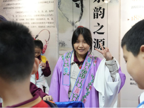 京劇元宇宙課程突破時(shí)空界限,通過生動(dòng)講解,學(xué)生深入了解了京劇的歷史淵源、行當(dāng)分類與藝術(shù)特色,仿佛完成一場與國粹的跨時(shí)空對(duì)話。在京劇形體教學(xué)中,學(xué)生們跟隨專業(yè)教師學(xué)習(xí)基本身段與動(dòng)作,于舉手投足間感悟京劇藝術(shù)的魅力,提升文化認(rèn)同與自豪感。