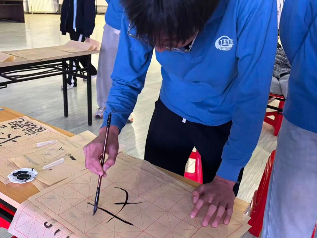 作為活動(dòng)的收官之作,11月7日的書法體驗(yàn)活動(dòng)為本次傳統(tǒng)技藝體驗(yàn)之旅畫上了圓滿句號(hào)。學(xué)院特別邀請(qǐng)了專業(yè)老師來到現(xiàn)場(chǎng),為學(xué)生們普及書法文化知識(shí)。課堂上,老師從漢字的演變歷程講起,介紹了楷書、行書、隸書等主要書體的特點(diǎn),以及書法在修身養(yǎng)性、文化傳承中的重要作用。在技能指導(dǎo)環(huán)節(jié),老師重點(diǎn)演示了毛筆的正確握法、基本筆畫的書寫技巧,并通過慢動(dòng)作示范,讓學(xué)生們清晰掌握起筆、行筆、收筆的要領(lǐng)。隨后,學(xué)生們鋪展宣紙、研磨蘸墨,在老師的指導(dǎo)下認(rèn)真練習(xí)基本筆畫,部分基礎(chǔ)較好的學(xué)生還嘗試創(chuàng)作簡(jiǎn)單的書法作品。現(xiàn)場(chǎng)墨香四溢,學(xué)生們?cè)谝还P一劃中感受著漢字的形態(tài)美與韻律美,進(jìn)一步提升了對(duì)中華優(yōu)秀傳統(tǒng)文化的認(rèn)同感與熱愛之情。