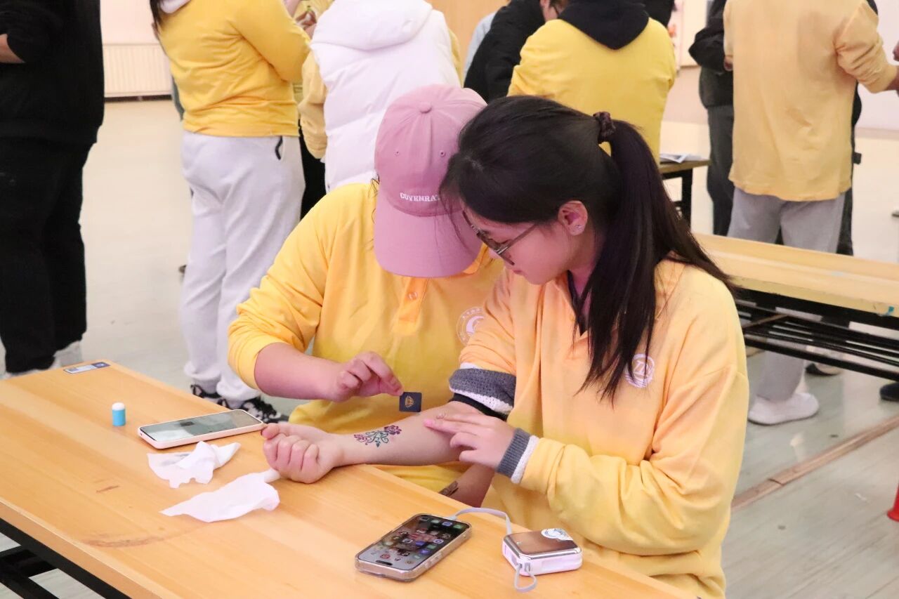 人體彩繪體驗(yàn)活動(dòng)打破了傳統(tǒng)非遺的呈現(xiàn)形式,為學(xué)生們帶來了全新的文化體驗(yàn)。志愿者首先向?qū)W生們闡述了人體彩繪如何將傳統(tǒng)紋樣、神話故事、民俗元素等融入創(chuàng)作,使其成為傳承文化的“流動(dòng)載體”。隨后,現(xiàn)場(chǎng)演示了彩繪工具的使用方法,以及圖案設(shè)計(jì)的構(gòu)圖技巧、色彩搭配原則。在創(chuàng)作環(huán)節(jié),學(xué)生們兩兩一組,在指定區(qū)域內(nèi)相互配合,將傳統(tǒng)元素與現(xiàn)代創(chuàng)意相結(jié)合,在同伴的手臂繪制出精美的彩繪作品。一幅幅融合了傳統(tǒng)文化與青春創(chuàng)意的作品,不僅展現(xiàn)了學(xué)生們的藝術(shù)才華,更讓大家看到了非遺文化在現(xiàn)代語境下的創(chuàng)新表達(dá)。