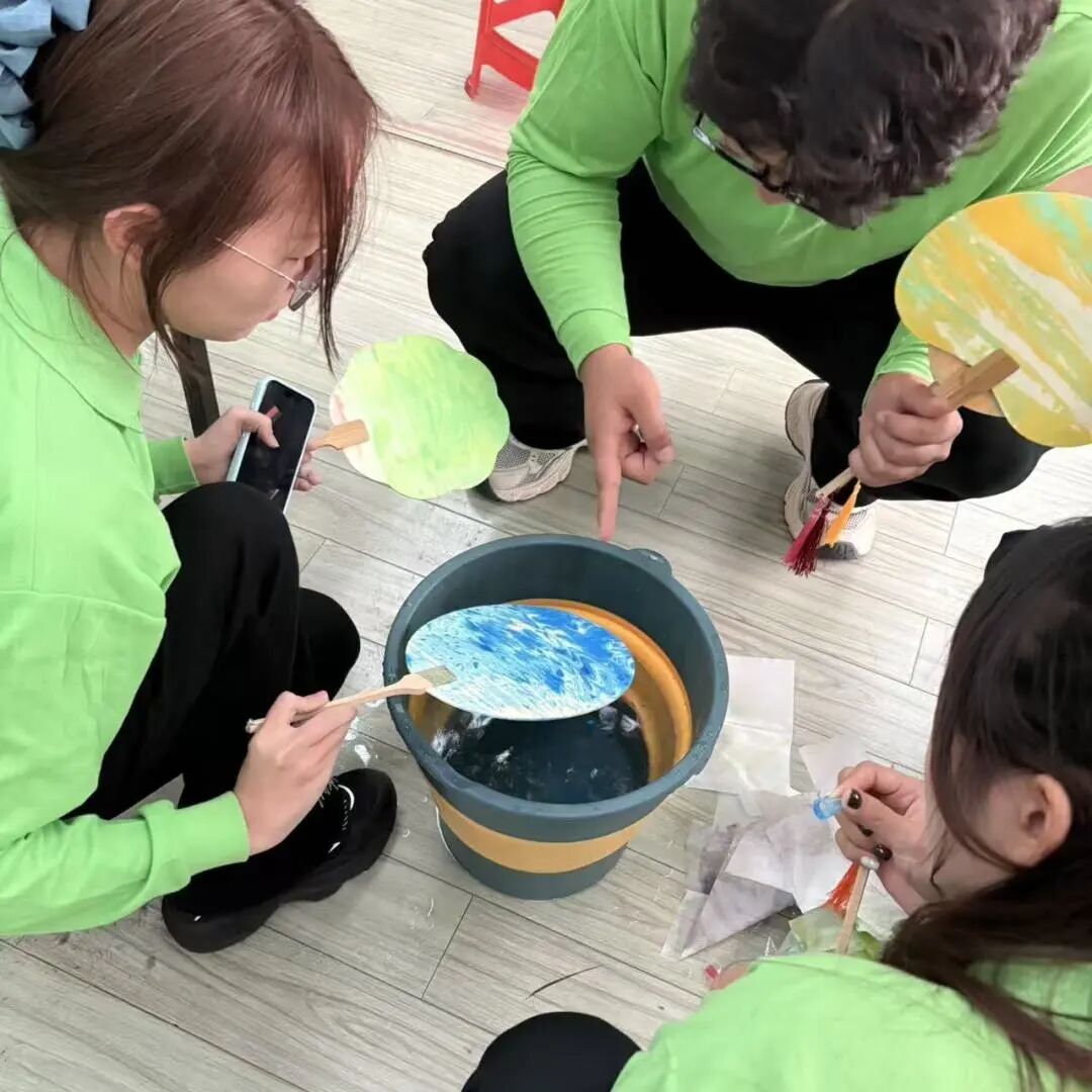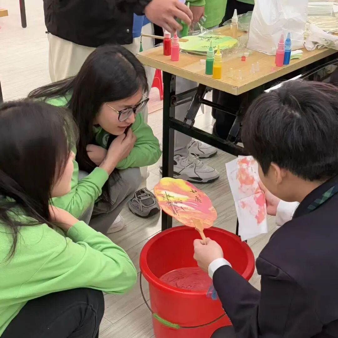 課堂上,志愿者首先生動(dòng)講述了漆扇的歷史源流與文化內(nèi)涵,從古代的生活用品到現(xiàn)代的藝術(shù)珍品,為同學(xué)們系統(tǒng)梳理了這項(xiàng)技藝的發(fā)展脈絡(luò)。隨后,志愿者們?cè)敿?xì)演示了漆扇制作的核心工藝,包括漆料調(diào)配、扇面處理、圖案繪制、上色暈染等關(guān)鍵環(huán)節(jié),并針對(duì)學(xué)生提出的疑問逐一解答。在實(shí)操環(huán)節(jié),學(xué)生們手持漆刷,在傳承人及工作人員的指導(dǎo)下,充分發(fā)揮想象力,在扇面上勾勒出山水、花鳥、傳統(tǒng)紋樣等多樣圖案,小心翼翼地完成上色步驟。待作品晾干后,同學(xué)們紛紛舉起自己完成的漆扇,臉上寫滿了欣喜與自豪,這些凝聚著創(chuàng)意與匠心的漆扇也成為了傳承非遺文化的珍貴紀(jì)念。