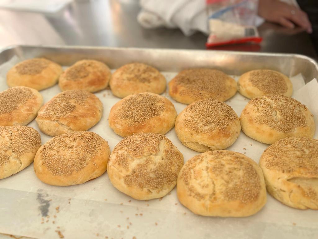 本次活動創(chuàng)新教學(xué)模式,將課堂直接搬進高標(biāo)準(zhǔn)食品安全實驗室,由擁有豐富面點制作經(jīng)驗的食堂師傅擔(dān)任實踐教師。面點師傅為學(xué)生們完整演示了傳統(tǒng)芝麻燒餅從和面、揉捏、包餡到撒芝麻、烘烤的全套流程。師傅手法嫻熟,講解細致,不僅傳授技藝,更分享了關(guān)于火候掌控、口感調(diào)配的獨家心得。學(xué)生們在師傅的 “手把手” 指導(dǎo)下,紛紛動手嘗試,完成了屬于自己的燒餅作品。