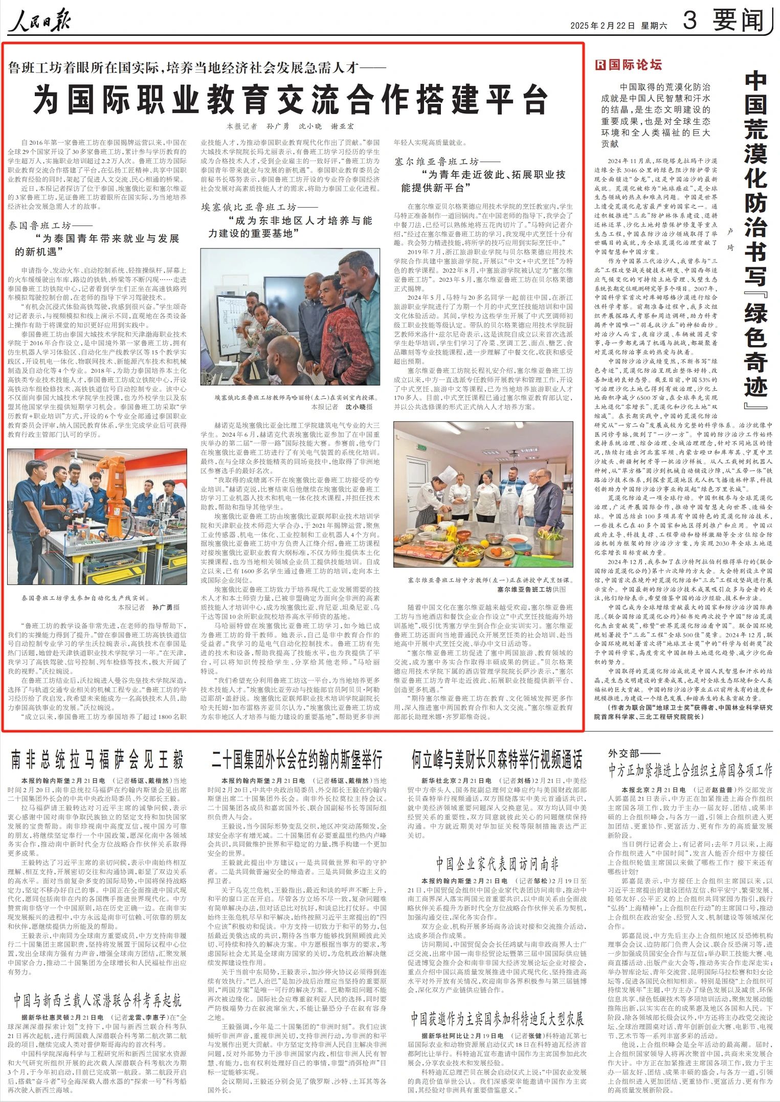 2月22日,《人民日報》第3版以“魯班工坊著眼所在國實際,培養當地經濟社會發展急需人才——為國際職業教育交流合作搭建平臺”為題,報道學校泰國魯班工坊“為泰國青年帶來就業與發展的新機遇”。