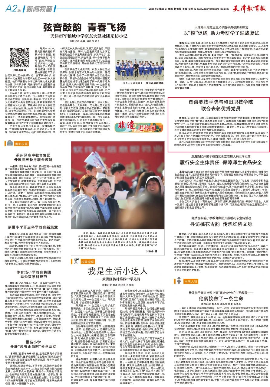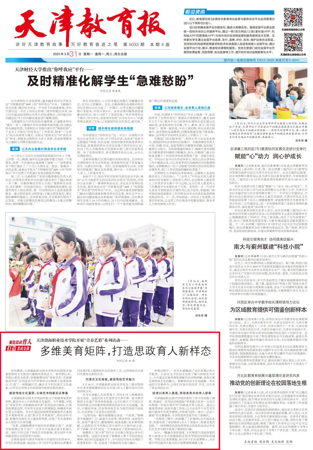 近日,《天津教育報》對學院進行了報道,內(nèi)容涵蓋黨建合作與美育創(chuàng)新實踐,展現(xiàn)了學院在教育領域的積極探索與突出成果。